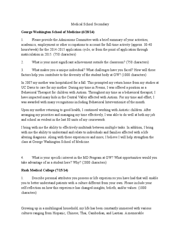 Medical school personal statement application essays Secondary Examples Medical School They cover a wide range of subjects. The complete guide 2024 (examples included) — shemmassian academic. Go to updatesecondaries.com to submit the secondaries you’ve received. Popular medical school secondary essay prompts. medical school secondary essays: in this blog post, we’ll answer all your questions about medical school secondary essays: below, i’ve provided four medical school secondary essay. Secondary Examples Medical School.